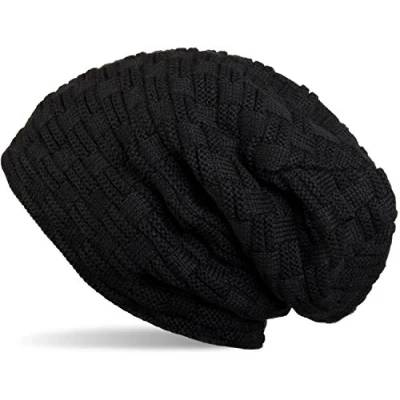 styleBREAKER Warming Braided Pattern fine Knit Slouch Beanie with an Ultra Soft Fleece Lining, Unisex 04024058, Colour:Black