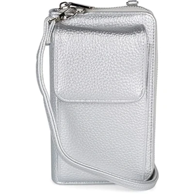 styleBREAKER Women Mini Bag Wallet with mobile phone pocket and RFID protection, shoulder bag, pocket, crossbag 02012362, Colour:Silver