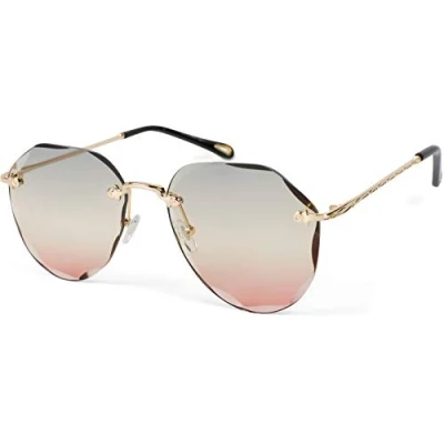styleBREAKER women pilot sunglasses frameless with tinted lenses in diamond polish, embossed legs, pentagonal 09020106, Colour:Frame gold/glass grey apricot gradient