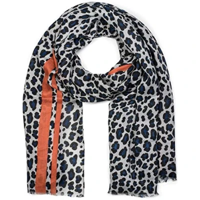 styleBREAKER women scarf with leopard print, coloured stripes and fringing, winter scarf, stole, shawl 01017082, Colour:Blue Orange