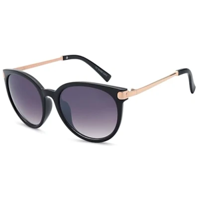 styleBREAKER Women's Cat Eye Sunglasses, Plastic Full Rim Frame with Metal Temples 09020073, black gold/lens grey tinted gradient