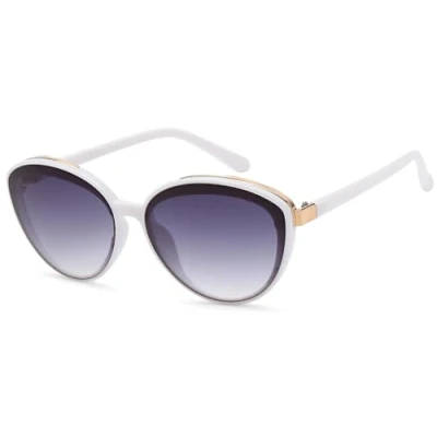 styleBREAKER Women's Oval Sunglasses with Filigree Plastic Frame and Metal Detail, Polycarbonate Lenses 09020144, Colour:White Frame/Grey Gradient Glass