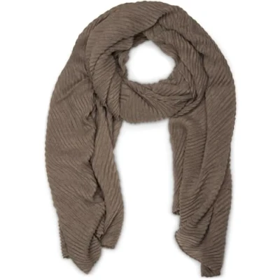 styleBREAKER Women's Scarf Solid Color with Fine Crinkled Surface, Lightweight Fabric, Pleated, Pleats 01016107, Colour:Taupe