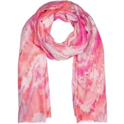 styleBREAKER Women's Scarf Waterfall Gradient Pattern with Metallic Details, Lightweight Large Shawl Short Fringes 01016227, Colour:Coral Pink