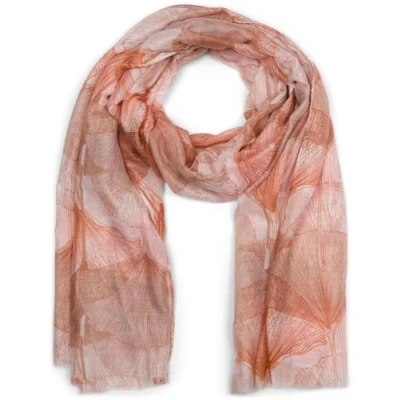 styleBREAKER Women's Scarf with Colorful Ginkgo Leaves Pattern Print and Short Fringes, Lightweight Shawl, Stole 01016208, Colour:Terracotta beige