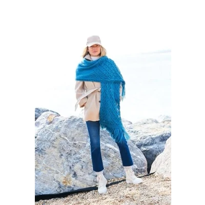 Stylecraft 9931 Adult Aran Shawls Knitting Pattern Yarn Used - Stylecraft Grace Aran but and Aran yarn can be used. Size - Trellis lace shawl - width 42 cm, 16.5 inch. length - 173 cm, 68 inch. long version - 187 cm, 73.5 inch. Small diamond lace shawl - width - 42.5 cm, 16.75 inch. length 180 cm, 70.75 inch You will need - 1 pair of 6 mm knitting needles and 5 mm knitting needles. Crochet hook for small diamond lace shawl.