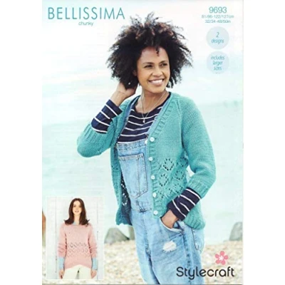 Stylecraft Bellissima Chunky Pattern 9693 Sweater and Cardigan, 2 Designs, Includes Larger Sizes