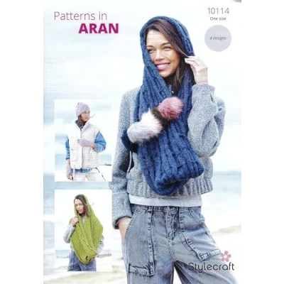 Stylecraft Knitting Pattern 10114 Ladies Slouch Hat, Wristwarmers, Snood, and Scarf/Snood in Aran Yarn