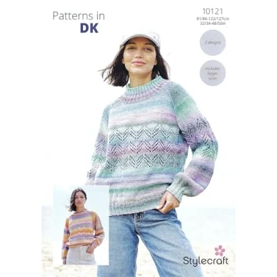 Please note, this is an instructional knitting pattern pamphlet, not the garment shown. Inclusive Sizing: Detailed instructions for a wide size range, from 32/34 inches to 48/50 inches, ensuring a flattering fit for all body types. Two Distinct Designs: Includes two sweater patterns, giving you the freedom to knit a versatile wardrobe staple or a bold statement piece. Designed for Stylecraft Chromatic DK Yarn: A premium yarn featuring stunning variegated shades that effortlessly create a gradient or multicolored effect. Perfect for showcasing intricate patterns and textures. Clear Instructions: Easy-to-follow steps make this pattern suitable for knitters of all skill levels, whether you're a beginner or an experienced crafter.