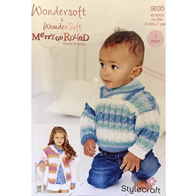 Stylecraft Wondersoft and Merry Go Round DK Pattern 9635 Cardigan and Sweater - 46-66cm, 18-26in, 6months - 7 Years, 2 Designs