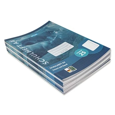25 exercise books in DIN A4 format, each with 16 sheets Paper with a thickness of 80 g/m² Line style 25 - lined, with 5 mm outer margins Ideal for preschool and school FSC mix - made from sustainable wood cultivation, made in Germany