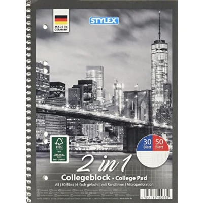 Stylex 40033 Duo A5 Notepad Squared/Lined, 50/30 Sheets