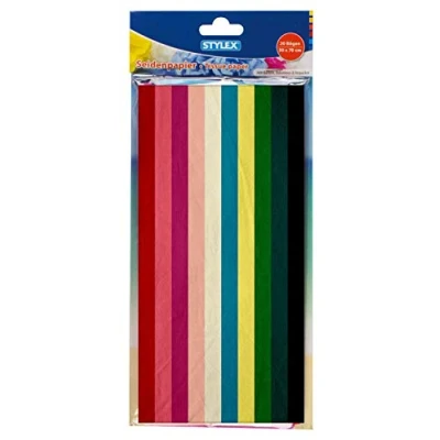 Stylex Tissue Paper 50 x 70 cm 20 Sheets Assorted in 10 Different, Non Waterproof, Glow Colouring, Ideal for Crafts, Decorating and Packaging, Multicoloured