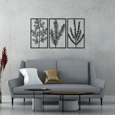 Crafted from 100% durable metal with a thickness of 1.5 mm, ensuring long-lasting quality and a sleek appearance. Eye-catching decorative wall accessory set includes three pieces, measuring 40 x 70 cm, perfect for enhancing any living space. Versatile design allows for easy hanging on any wall, making it a stylish addition to your home, office, or gallery. Elegant black color complements a variety of interior styles, from modern to industrial, adding a touch of sophistication. Ideal for creating a stunning focal point in your room, this decorative metal wall accessory is perfect for showcasing your unique taste.