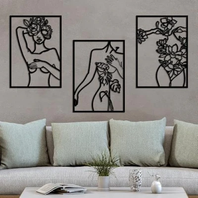 Crafted from 100% durable metal with a thickness of 1.5 mm, ensuring long-lasting quality and a sleek appearance. Generous size of 50 x 70 cm, featuring three distinct pieces that create a stunning visual impact on any wall. Lightweight design at just 0.675 kg, making it easy to hang and rearrange without hassle. Elegant black color complements a variety of decor styles, adding a modern touch to your home or office. Versatile wall accessory perfect for living rooms, bedrooms, or entryways, enhancing your space with artistic flair.