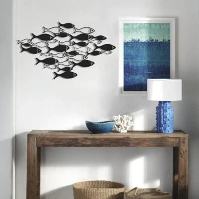 Crafted from 100% high-quality steel with a thickness of 1.5 mm, ensuring durability and a modern aesthetic for your home decor. Generous dimensions of 41 x 70 cm make this decorative wall accessory a striking focal point for any room, enhancing your interior design. Lightweight at just 0.8 kg, this metal wall accessory is easy to hang and reposition, allowing for effortless decor updates. Sleek black finish adds a touch of elegance and versatility, seamlessly complementing various color schemes and design styles. Perfect for living rooms, bedrooms, or offices, this decorative piece adds character and sophistication to any space.