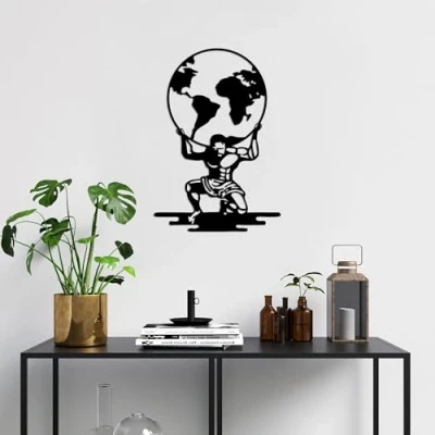 Crafted from 100% durable metal with a thickness of 1.5 mm, ensuring long-lasting quality and a sleek appearance. Generous dimensions of 49 x 70 cm make this decorative wall accessory a striking focal point for any room. Lightweight design at just 0.403 kg allows for easy installation and repositioning without damaging your walls. Features a convenient hanging piece on the back, making it simple to mount and display in your desired location. Elegant black color complements a variety of decor styles, adding a modern touch to your home or office space.