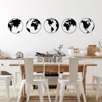 Crafted from 100% durable metal with a thickness of 1.5 mm, ensuring long-lasting quality and a sleek appearance. Stylishly designed in a modern black color, this decorative wall accessory adds a touch of elegance to any room or office space. Each set includes five individual pieces, allowing for versatile arrangements and creative displays on your walls. Lightweight at just 0.354 kg, this wall accessory is easy to hang and reposition, making it perfect for any DIY home decor project. Measuring 50 x 50 cm, this eye-catching piece is ideal for enhancing your living room, bedroom, or hallway with a contemporary flair.