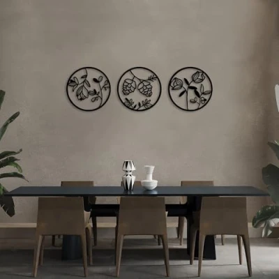 Crafted from 100% high-quality metal with a thickness of 1.5 mm, ensuring durability and a premium look for your home decor. Generous 70 cm diameter makes a bold statement, perfect for enhancing any wall space in your living room, bedroom, or office. Sleek black color adds a modern touch, seamlessly blending with various interior styles and color schemes. Easy to hang on any wall, allowing for quick and hassle-free installation to elevate your decor instantly. Ideal as a standalone piece or as part of a gallery wall, this decorative metal wall accessory is perfect for showcasing your unique style.
