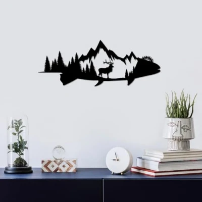 Crafted from 100% durable metal with a thickness of 1.5 mm, ensuring long-lasting quality and a sleek appearance. Generous dimensions of 70 x 26 cm make this decorative wall accessory a striking focal point for any room. Lightweight design at just 0.56 kg allows for easy installation and repositioning without damaging your walls. Features a convenient hanging piece on the back, making it simple to mount and display in your home or office. Elegant black color complements a variety of decor styles, adding a modern touch to your living space.