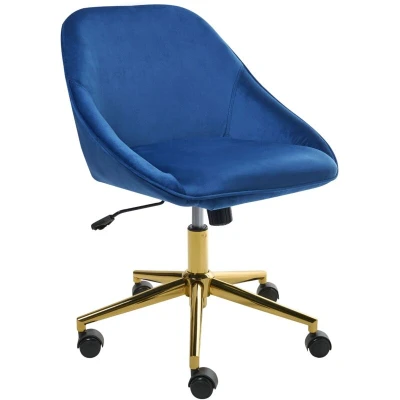 Stylish Velvet Office Chair Adjustable Swivel Function Metal Legs Navy Blue Bardsdale