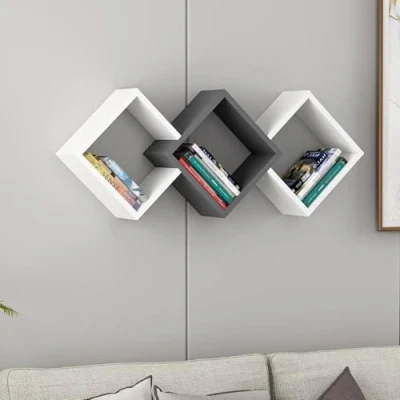Stylish and modern design featuring a sleek combination of white and anthracite colors, perfect for enhancing any room decor. Made from 100% melamine coated particle board, ensuring durability and resistance to scratches and moisture. Generous dimensions of 102 cm width, 42 cm height, and 20 cm depth provide ample space for displaying books, plants, and decorative items. Easy to install and fix to the wall, offering a secure and space-saving solution for your storage needs. Versatile design suitable for various settings, including living rooms, bedrooms, and home offices.