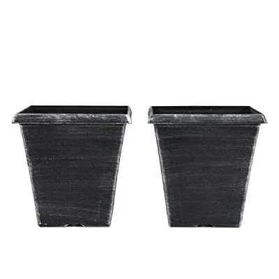 Stylist Biscotti Decorative Square Garden Patio Planter finished in a Brushed Bronze & Black or Silver Paint Effect 23cm Lightweight Flower Pots with Pre Drilled Drainage Holes (Silver x2)