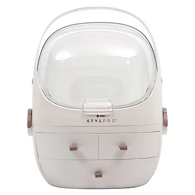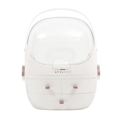 STYLPRO Beauty Storage Pod, Cosmetics & Skincare Organiser with 3 Drawers, Detachable Lid, Dustproof Cover Travel Handle for Dresser, Bedroom, Bathroom Home Organisation, White 31x27x40cm