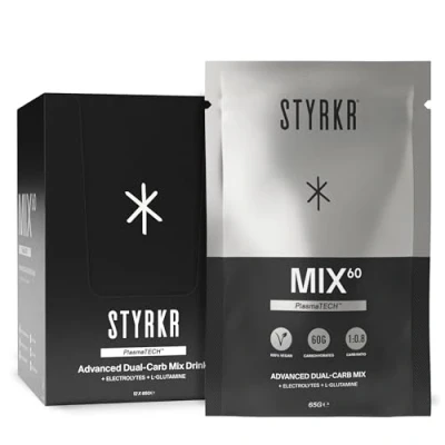 WORLD’S BEST, ATHLETE-APPROVED, ALL-IN-ONE SPORTS FUEL: MIX60 drink powder contains a scientifically-researched and athlete-approved mix of carbohydrates (60g), electrolytes and L-Glutamine designed to help all athletes – from supported pros to enthusiastic amateurs – go harder for longer. Well-renowned ironmen, cyclists and runners use Styrkr products during training and events because they deliver when it matters most. MAXIMUM ENERGY BOOST: During intense exercise, carbohydrates are your body’s primary source of energy and more can be absorbed per hour when they come from multiple transportable sources: in this case maltodextrin and fructose (converted to glucose in the liver). Styrkr’s MIX60 carbohydrate drink powder incorporates this dual-carb system – and contains 60g of carbohydrates – to help you reach your finish line in the fastest time possible. AVOID UNWANTED MUSCLE IRRITATION: For activity over 60 minutes – or in hot conditions – it’s important that electrolytes are used to hydrate. Dehydration increases usage of muscle glycogen and decreases blood volume and digestive function, none of which are beneficial for endurance activity. Styrkr’s MIX60 carbohydrate supplement helps replace the electrolytes lost in sweat. Water alone can cause bloating, reducing the desire to drink and fluids not being replaced properly. LESSEN FATIGUE AND IMPROVE PERFORMANCE: During endurance exercise blood ammonia concentration increases causing fatigue. Styrkr’s MIX60 carbohydrate energy drink contains L-glutamine which reduces this accumulation, lessening fatigue and improving performance. SMART ON THE BODY, GENTLE ON THE STOMACH: Mix carbohydrate drink powder with exactly 500ml of water. Blending at this ratio allows optimal carbohydrate absorption before, during and/or after endurance and is much gentler on the stomach.