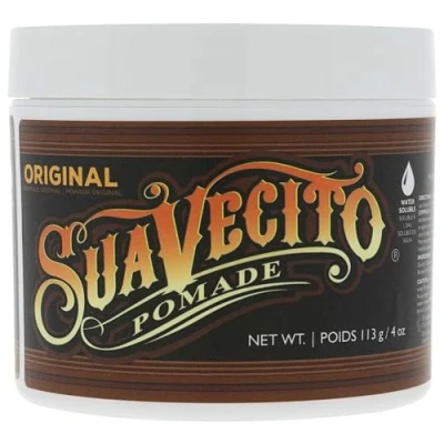 ORIGINAL HOLD. MEDIUM STRENGTH. Suavecito Original Hold Pomade dries with a medium hardness without a crunchy finish. Get maximum styling flexibility that is perfect for both short hair and long hair. After a long day, touch up your style simply by adding water to reactive your do. WATER SOLUBLE. Suavecito Original Hold Pomade is the ultimate high quality, medium hold, and water soluble hair care product. It grips your hair like wax, but washes out like hair gel. The perfect addition to any grooming kit, you get the best of both worlds. COMBS EASILY WITH NO WHITE RESIDUE. This lightly scented pomade combs in effortlessly and easily. With a clean, fresh smell there will be no white residue left behind. It works perfectly on classic, modern, retro, and old school styles for a look that lasts all day. MODERATE SHINE. This moderate shine pomade has an easy creamy consistency. Perfect for everyone from professional barbers and hair stylists, to bartenders and guys on the go. Look good any time of day or night. COMMUNITY TRUSTED. Inspired by men and women who love motorcycles, custom cars, and tattoos, we know how important it is to get their trust, and we did. Suavecito prides itself on community and quality. Made 100% in the USA.