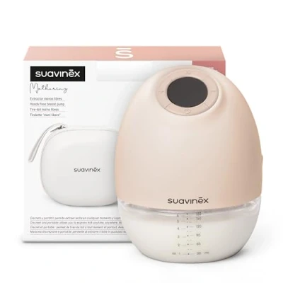 Suavinex, Breast Milk Pump, Hands Free No Cables, Tubes, with Battery, 3 Modes and 9 Suction Intensities, Adapters, Case Brush, LED Display, Tank 180 ml
