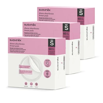 SUAVINEX Pack of 2 x 60 Disposable Nursing Pads, Super Breathable and Absorbent. No Noticeable on Clothes, 120 307301, White, Unidades