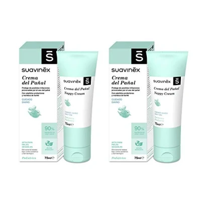 Suavinex Pack of 2 x Cream Nappy for Babies, Protects from Irritations and Redness, Suitable Sensitive Skins, 90% Natural Origin Ingredients, Green, 75 Milililitres, 307535