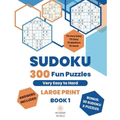 Sudoku 300 fun Puzzles, large print with answers.: 75 puzzles of very easy, medium and hard. Bonus? 30 'Sudoku X' answers