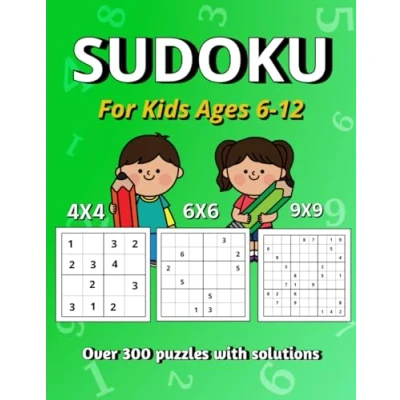 Sudoku for Kids Ages 6 12: Over 300 Puzzles with Solutions, 4X4, 6X6 and 9X9 Suitable Beginners, Variety Increasing Difficulty to Build Confidence Skill