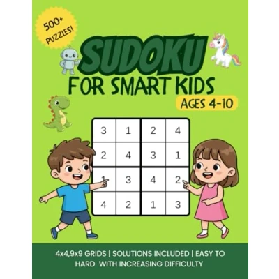 Sudoku for Smart Kids Ages 410 500+ Puzzles 4x4 & 9x9 Easy, Medium Hard with increasing difficulty: Dinosaur, Robot Unicorn Themes, including solutions