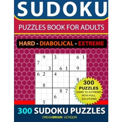 Sudoku puzzles book for adults 300 HARD TO EXTREME with Full Solutions HARD, DIABOLICAL, EXTREME: 3 levels puzzle