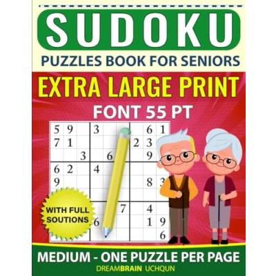 Sudoku Puzzles Book for Seniors Medium EXTRA LARGE PRINT: Brain Exercise: One Puzzle Per Page Level with Full Solutions Font Size 55 PT