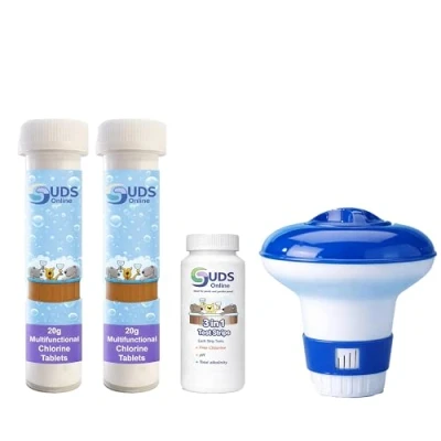 SUDS ONLINE Small Dispenser with 30 Multifunctional Chlorine Tablets 20g + Test Strips