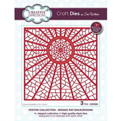 Great background die that can be used all year long Size die 12.8 x 12.8 cm, 3 die set. Designed by Sue Wilson High quality steel die, will work with most home die cutting machines Mix and match with other Creative Expressions dies