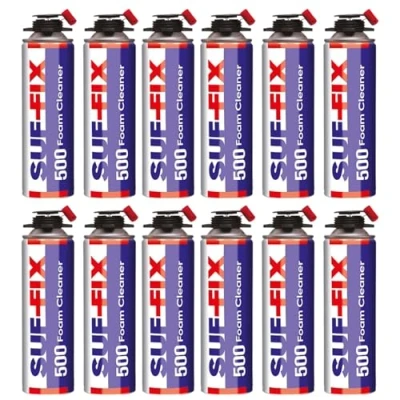 SUF FIX 12x Expanding PU Foam Gun Cleaner 500 ml Contractor Grade Liquid Cleaning Designed to Absorb and Remove Foams (Clear, Pack of 12)