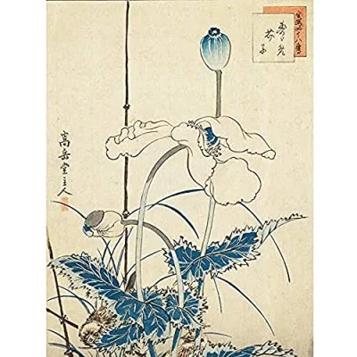 Sugakudo Kunstdruck auf Leinwand, Motiv: Vogel über Mohnblumen, Premium Wanddekoration, Poster