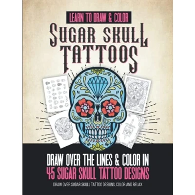 Sugar Skull Tattoo Adult Coloring Book: Draw Over The Outlines & Color 45 Designs. Learn to Tattoos Relaxation