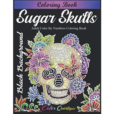 Sugar Skulls Coloring Book Adult Color By Numbers BLACK BACKGROUND: Day of the Dead Dia de Los Muertos (Color Number For Adults)