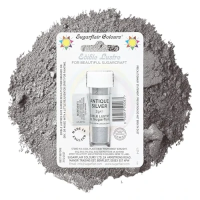 Sugarflair Antique Silver Edible Lustre Dust, Add a Lustrous Shine to Cakes or Decorations. Brush On Rejuvenator Create Eye Catching Paint, Gives Your Bakes 2g (Pack of 2)