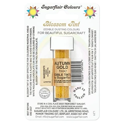 Sugarflair Blossom Tint Autumn Gold Food Colouring and Dusting Powder, Matt Finish, Brush On or Mix with Rejuvenator Spirit to Create A One of Kind Cake 7ml