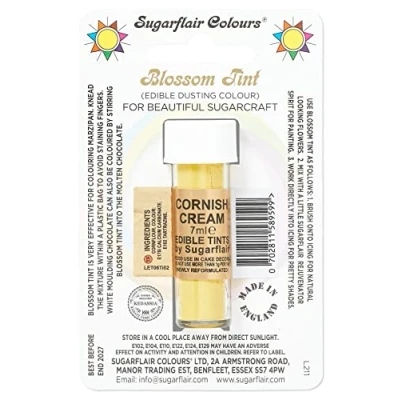 Sugarflair Blossom Tint Cornish Cream Food Colouring and Dusting Powder, Matt Finish, Brush On or Mix with Rejuvenator Spirit to Create A One of Kind Cake 7ml
