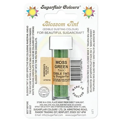 Sugarflair Blossom Tint Moss Green Food Colouring and Dusting Powder, Matt Finish, Brush On or Mix with Rejuvenator Spirit to Create A One of Kind Cake 7ml