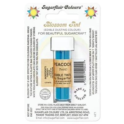Sugarflair Blossom Tint Peacock Food Colouring and Dusting Powder, Matt Finish, Brush On or Mix with Rejuvenator Spirit to Create A One of Kind Cake 7ml