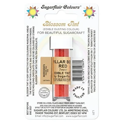 Sugarflair Blossom Tint Pillar Box Red Food Colouring and Dusting Powder, Matt Finish, Brush On or Mix with Rejuvenator Spirit to Create A One of Kind Cake 7ml